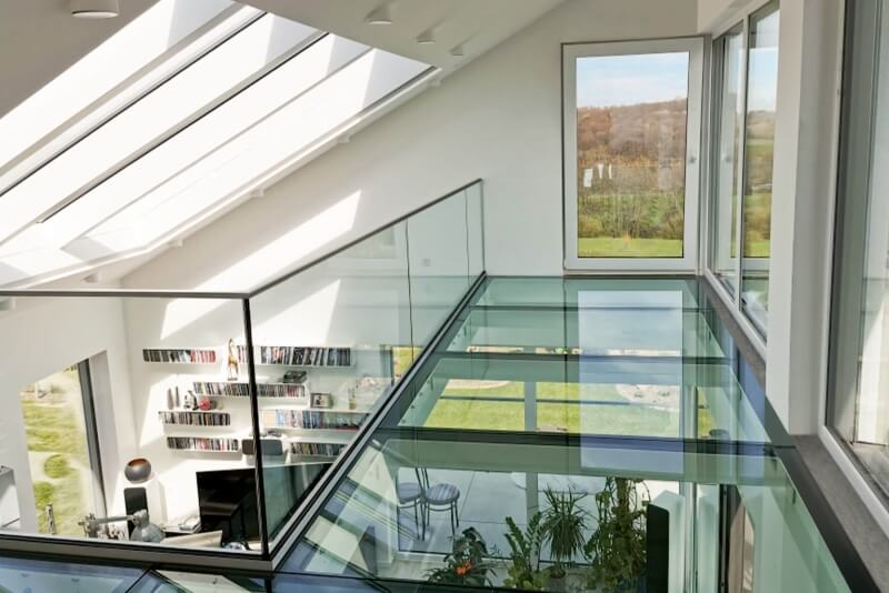 Mit dem transparenten und futuristischen Design schafft das begehbare Glas optisch mehr Freifläche und sorgt für einen hohen Lichteinfall. Durch individuelle Maße können unsere Glasböden in verschiedenen Bereichen eingesetzt werden: